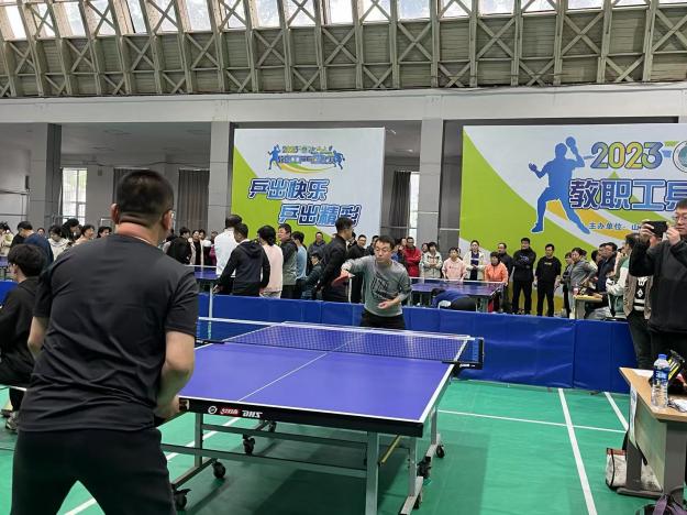 2023年4月22日,山西大学教职工乒乓球比赛在校体育馆隆重举行。山西大学新闻学院工会积极组织教职工参与此次比赛,展现了学院教职工团结协作、奋勇拼搏的精神风貌。