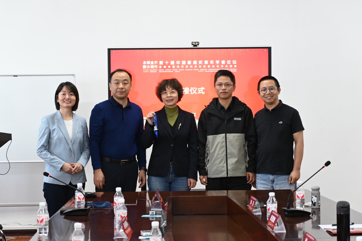 在闭幕交接仪式上,黑龙江大学新闻传播学院副院长田雷、山西大学新闻学院院长庞慧敏和中国社会科学院新闻与传播研究所研究室负责人向芬、叶俊、沙垚共同完成了论坛吉祥物的交接。第十一届将由中国新闻史学会、中国社会科学院新闻与传播研究所、山西大学共同主办。