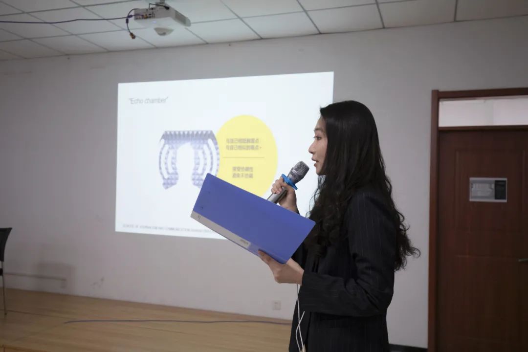 杨一帆同学演讲的主题是《算法囚徒——对算法社会的反思》,着眼于手机应用程序的算法推荐,对互联网算法进行解释,讲述了当下大众成为算法勾勒的网络下的“囚徒”,引人深思。