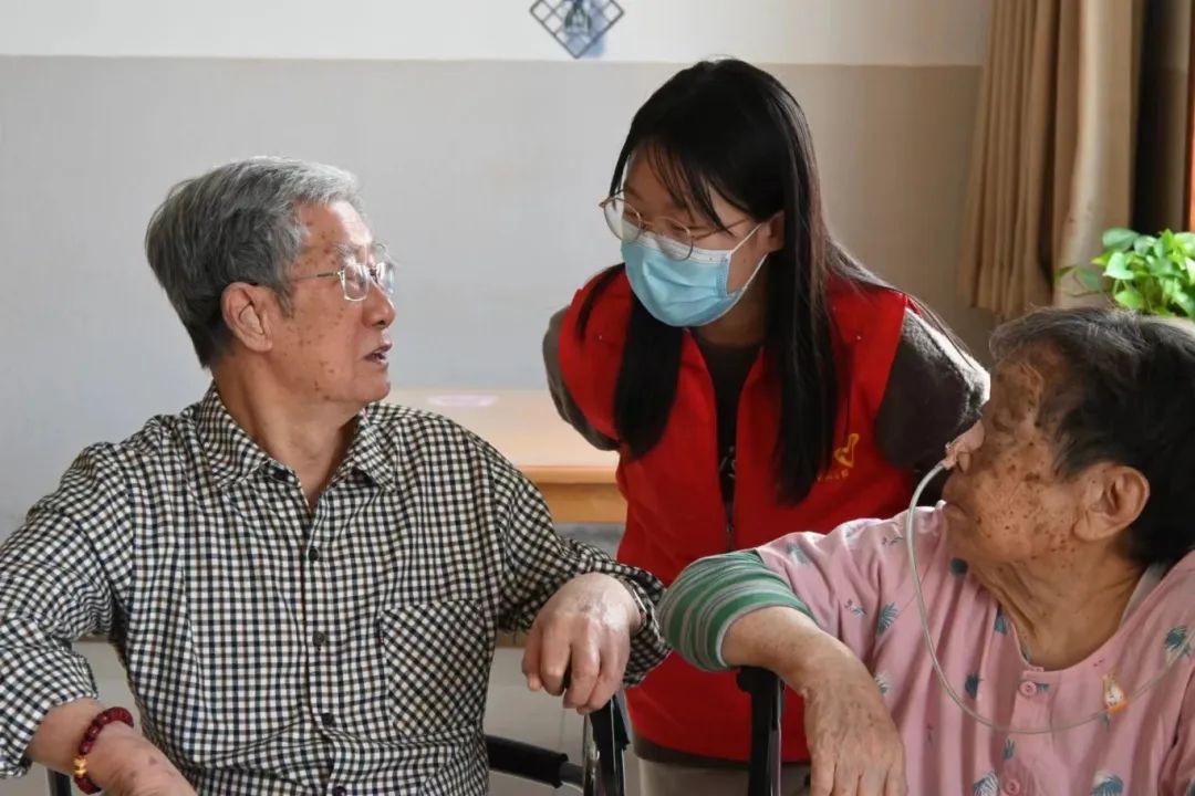 志愿者们围坐在老人身旁,与老人亲切交流,分享自己的大学生活以及有趣经历,他们用朴实的行动表达对老人的关爱,认真倾听老人们讲述过往的艰苦岁月,平日里清净的养老院一下子变得热闹起来。