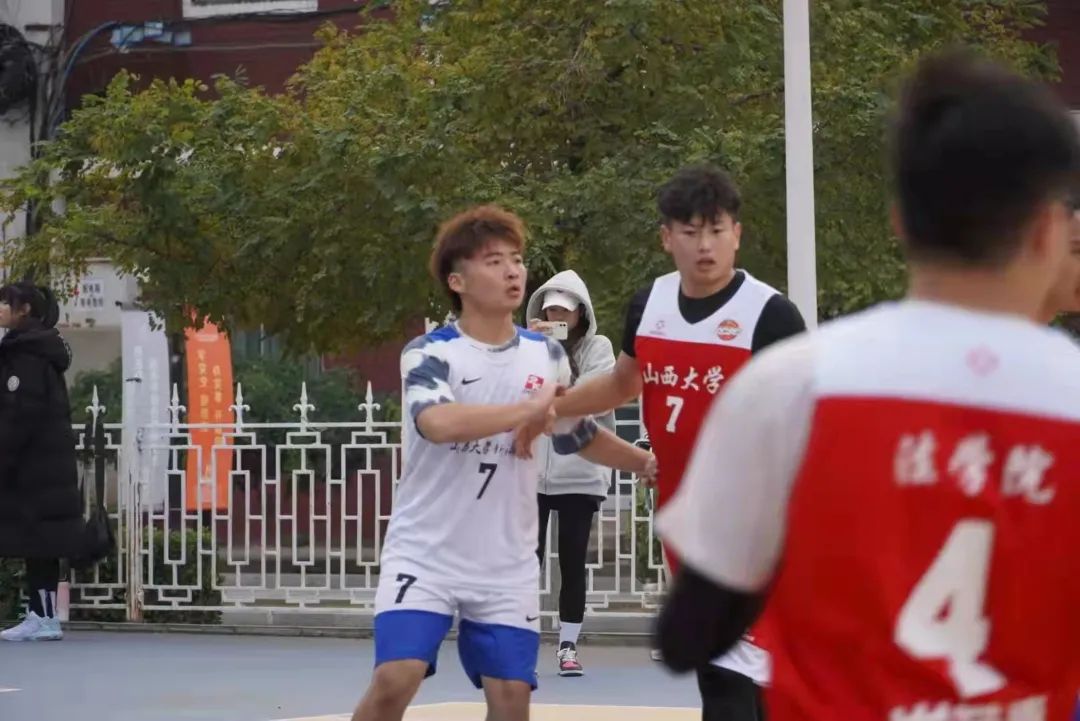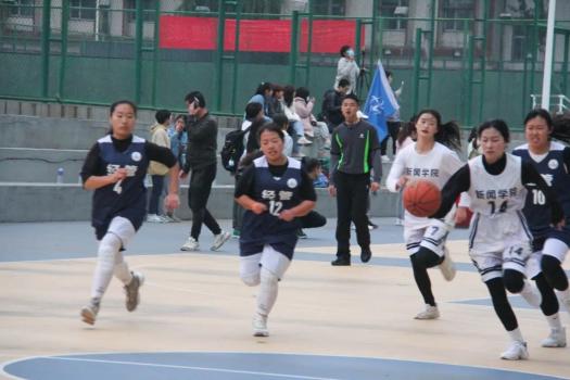 下半场比赛中,新闻学院队员保持了火热手感,频频得分,积极防守,逐渐缩小了与强敌之间的分差。